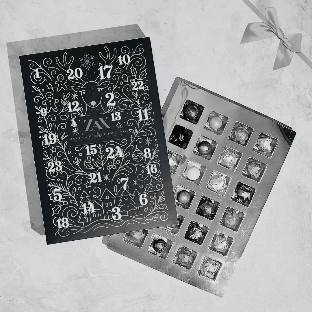 Az eddigi legcsodálatosabb NEW Xmas luxus ádventi naptárunk a kézzel rajzolt, aranyló karácsonyi motívumokkal 24 különböző csokoládé meglepetést rejtv. Idén 6 ízben élvezhetőek a valódi ZAX bonbonok. Decemberben minden nap egy olyan des pillanat vár rád, amely kellemesebbé teszi a karácsonyra való áldásos várakozást.
