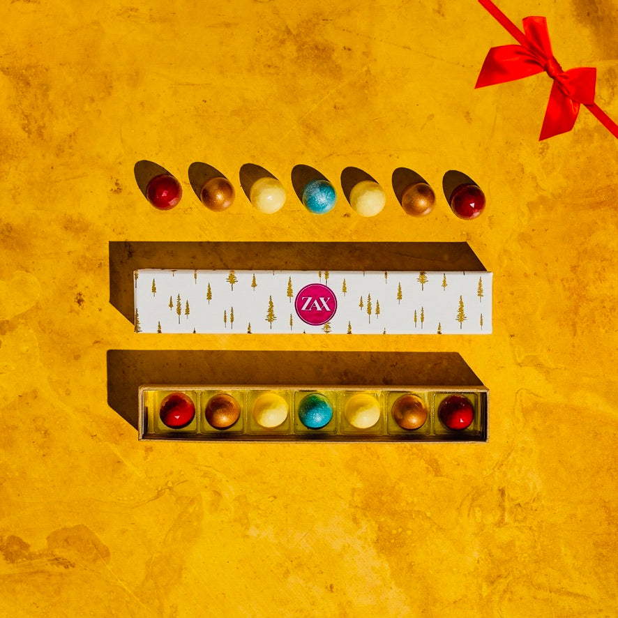 Karácsonyi elegancia egy hosszúkás doboz formájában, karácsonyi arany motívummal és 7 egyedi praliné választékkal. Élvezd a karácsonyi ízeket, mint a gesztenye, narancs, vagy a finom pekándiós gianduja. Tökéletes ajándék a minőségi csokoládé kedvelőinek.