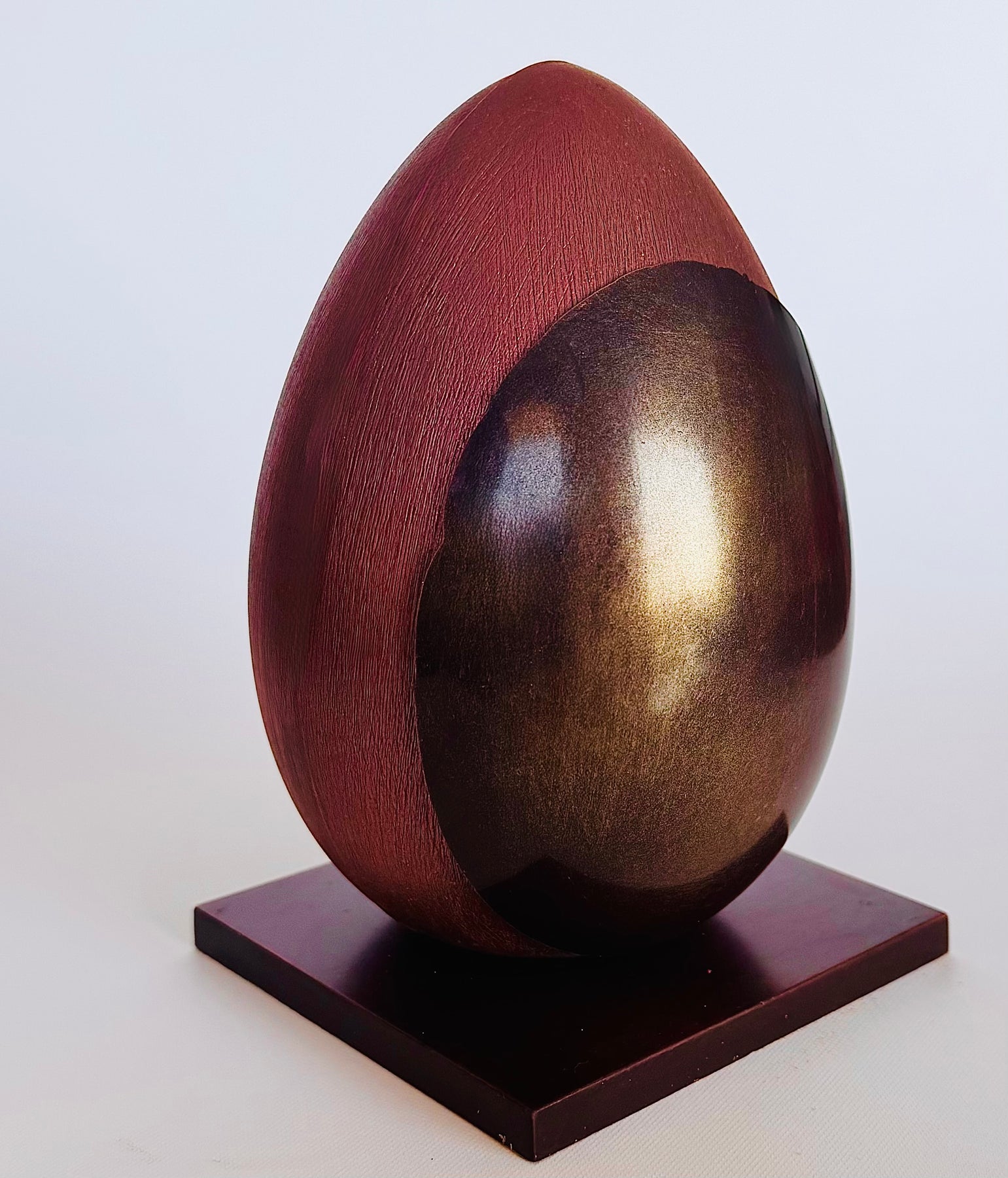 15 cm-es étcsokoládé óriástojás. Egy hagyománytisztelő csoda - elsősorban felnőttebbeknek. A roppanós 4 milliméter vastag külső héj 70%-os venezuelai eredetű csokoládéból készült, s így került elhelyezésre a 40%-os tejcsokoládéból készült talpazatra. Küllemében a domináns mélybordó és bronz színekre épít. Sárga-transzparens dobozban. Matt és fényes csokoládé felülettel.